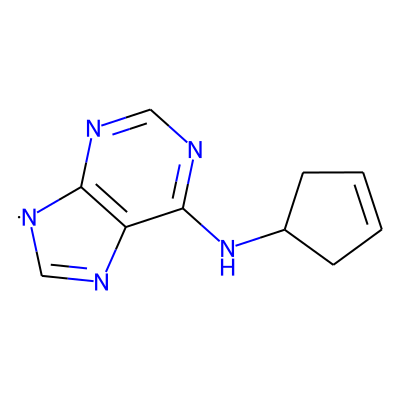OC[C@H]1O[C@@H](n2cnc3c(NC4CC=CC4)ncnc32)[C@H](O)[C@@H]1OAglycone: