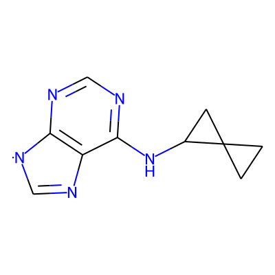 C1=Nc2c(ncnc2NC2CC23CC3)[N]1| HBA: | 5 | RingCount: | 4 |