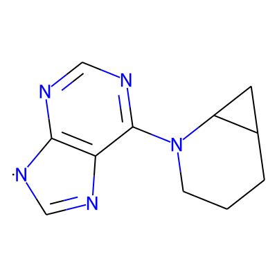 C1=Nc2c(ncnc2N2CCCC3CC32)[N]1| HBA: | 5 | RingCount: | 4 |
