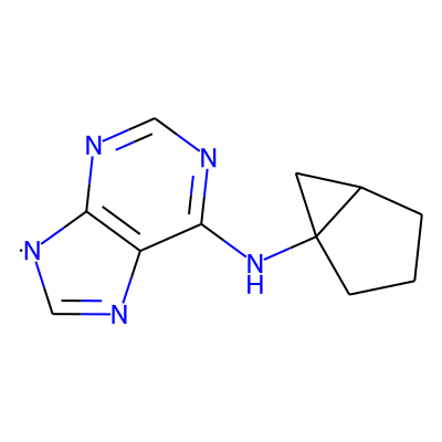 OC[C@H]1O[C@@H](n2cnc3c(N[C@]45CCC[C@H]4C5)ncnc32)[C@H](O)[C@@H]1OAglycone:
