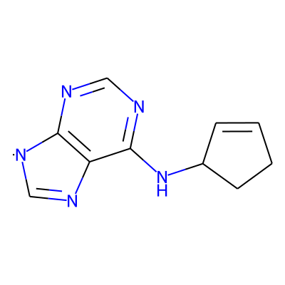 OC[C@H]1O[C@@H](n2cnc3c(N[C@H]4C=CCC4)ncnc32)[C@H](O)[C@@H]1OAglycone:
