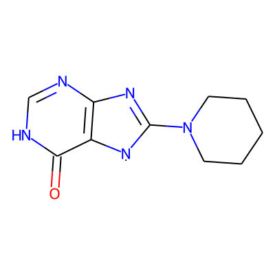 O=c1[nH]cnc2c1[N]C(N1CCCCC1)=N2| HBA: | 6 | RingCount: | 3 |
