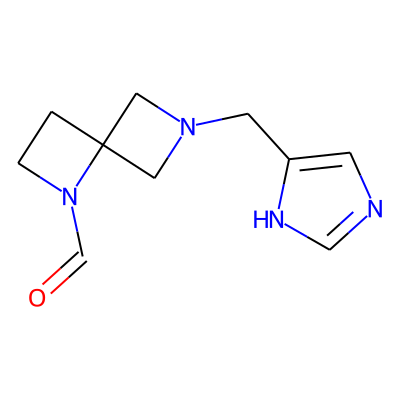 O=CN1CCC12CN(Cc1cnc[nH]1)C2| HBA: | 5 | RingCount: | 3 |
