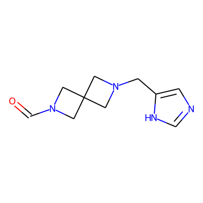 O=CN1CC2(C1)CN(Cc1cnc[nH]1)C2| HBA: | 5 | RingCount: | 3 |