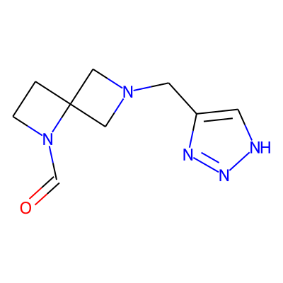 O=CN1CCC12CN(Cc1c[nH]nn1)C2| HBA: | 6 | RingCount: | 3 |