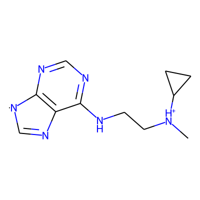 C[NH+](CCNc1ncnc2c1N=C[N]2)C1CC1| HBA: | 6 | RingCount: | 3 |