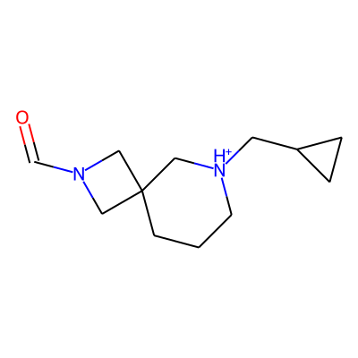 O=CN1CC2(CCC[NH+](CC3CC3)C2)C1| HBA: | 3 | RingCount: | 3 |