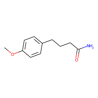 COc1ccc(CCCC(N)=O)cc1| HBA: | 3 | RingCount: | 1 |