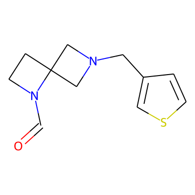 O=CN1CCC12CN(Cc1ccsc1)C2| HBA: | 3 | RingCount: | 3 |