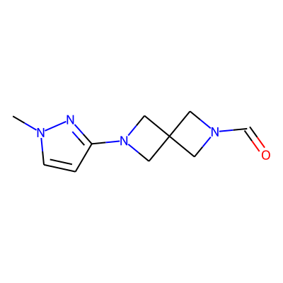 Cn1ccc(N2CC3(CN(C=O)C3)C2)n1| HBA: | 5 | RingCount: | 3 |