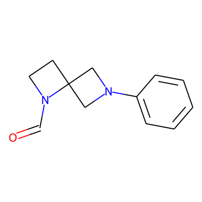 O=CN1CCC12CN(c1ccccc1)C2| HBA: | 3 | RingCount: | 3 |