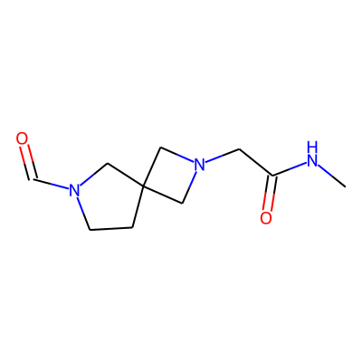 CNC(=O)CN1CC2(CCN(C=O)C2)C1| HBA: | 5 | RingCount: | 2 |