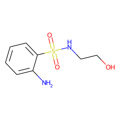 Nc1ccccc1S(=O)(=O)NCCO| HBA: | 5 | RingCount: | 1 |