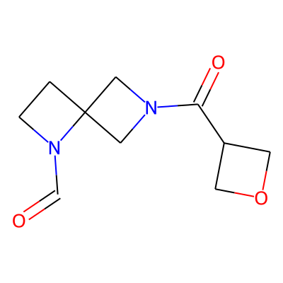 O=CN1CCC12CN(C(=O)C1COC1)C2| HBA: | 5 | RingCount: | 3 |