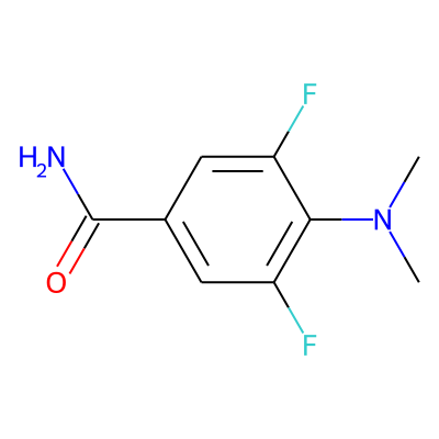 CN(C)c1c(F)cc(C(N)=O)cc1F| HBA: | 3 | RingCount: | 1 |