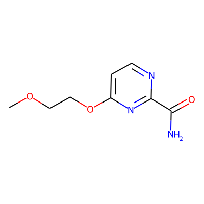 COCCOc1ccnc(C(N)=O)n1| HBA: | 6 | RingCount: | 1 |