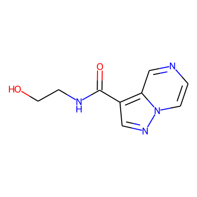 O=C(NCCO)c1cnn2ccncc12| HBA: | 6 | RingCount: | 2 |