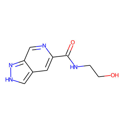 O=C(NCCO)c1cc2c[nH]nc2cn1| HBA: | 6 | RingCount: | 2 |