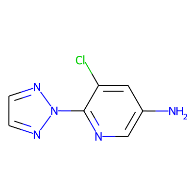 Nc1cnc(-n2nccn2)c(Cl)c1| HBA: | 5 | RingCount: | 2 |