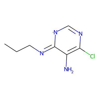 CCCN=C1[N]C=NC(Cl)=C1N| HBA: | 4 | RingCount: | 1 |