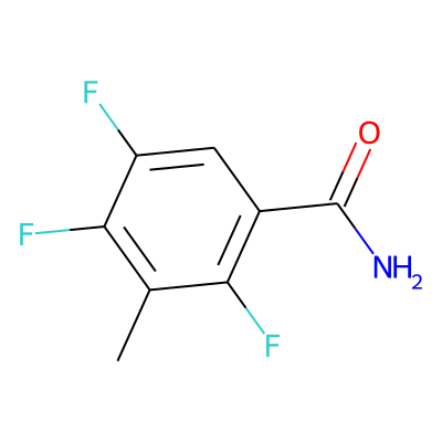Cc1c(F)c(F)cc(C(N)=O)c1F| HBA: | 2 | RingCount: | 1 |