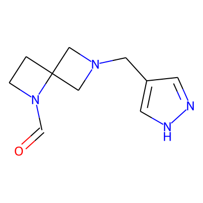 O=CN1CCC12CN(Cc1cn[nH]c1)C2| HBA: | 5 | RingCount: | 3 |