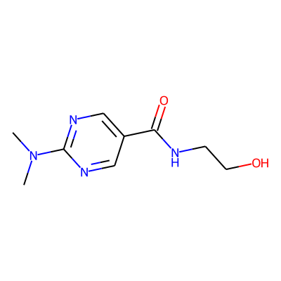 CN(C)c1ncc(C(=O)NCCO)cn1| HBA: | 6 | RingCount: | 1 |