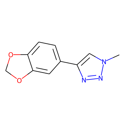 Cn1cc(-c2ccc3c(c2)OCO3)nn1| HBA: | 5 | RingCount: | 3 |