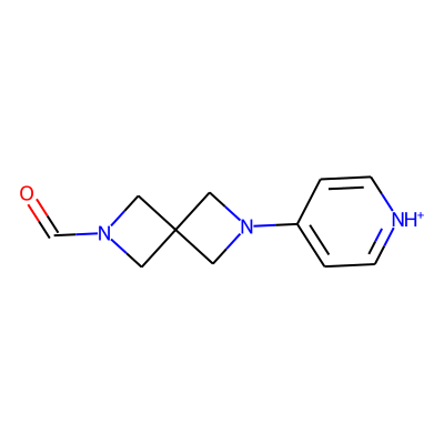 O=CN1CC2(C1)CN(c1cc[nH+]cc1)C2| HBA: | 4 | RingCount: | 3 |