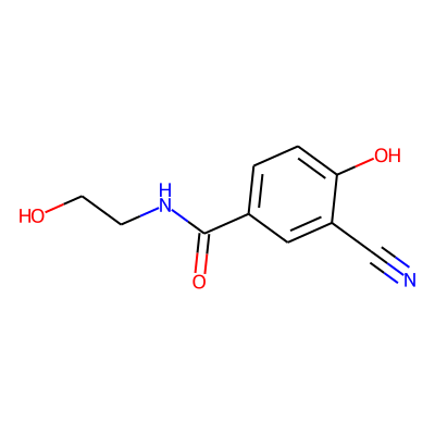 N#Cc1cc(C(=O)NCCO)ccc1O| HBA: | 5 | RingCount: | 1 |