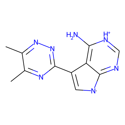 Cc1nnc(C2=C[N]c3nc[nH+]c(N)c32)nc1C| HBA: | 7 | RingCount: | 3 |