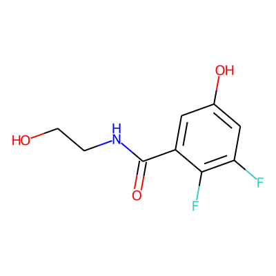 O=C(NCCO)c1cc(O)cc(F)c1F| HBA: | 4 | RingCount: | 1 |