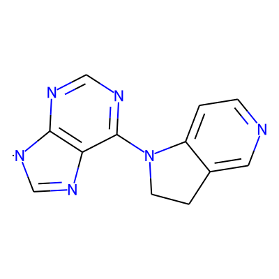 C1=Nc2c(ncnc2N2CCc3cnccc32)[N]1| HBA: | 6 | RingCount: | 4 |