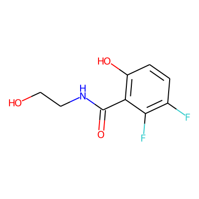 O=C(NCCO)c1c(O)ccc(F)c1F| HBA: | 4 | RingCount: | 1 |
