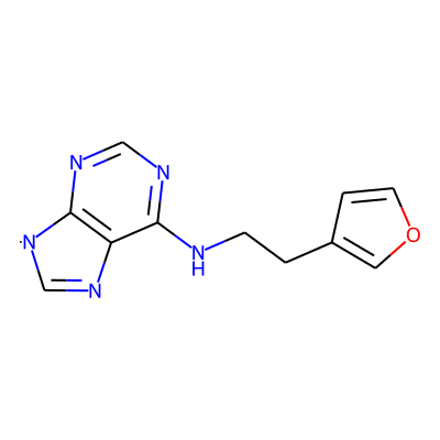 C1=Nc2c(ncnc2NCCc2ccoc2)[N]1| HBA: | 6 | RingCount: | 3 |