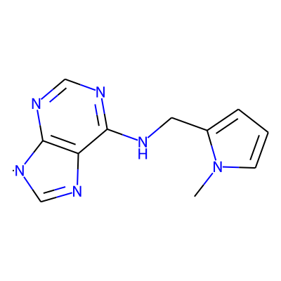Cn1cccc1CNc1ncnc2c1N=C[N]2| HBA: | 6 | RingCount: | 3 |