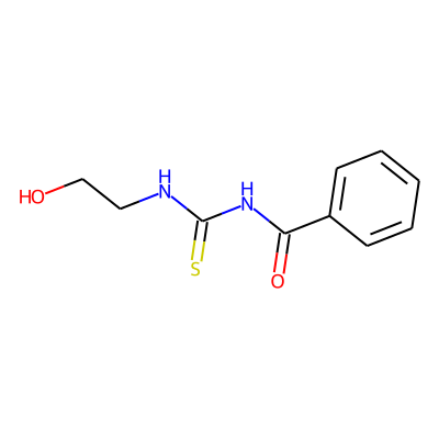 O=C(NC(=S)NCCO)c1ccccc1| HBA: | 4 | RingCount: | 1 |