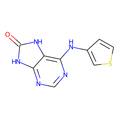 O=c1[nH]c2ncnc(Nc3ccsc3)c2[nH]1| HBA: | 6 | RingCount: | 3 |
