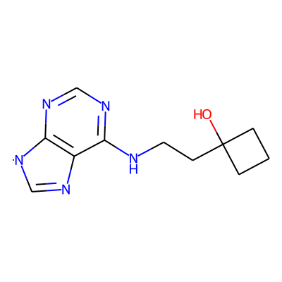 OC[C@H]1O[C@@H](n2cnc3c(NCCC4(O)CCC4)ncnc32)[C@H](O)[C@@H]1OAglycone: