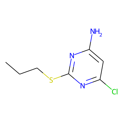 CCCSc1nc(N)cc(Cl)n1| HBA: | 3 | RingCount: | 1 |