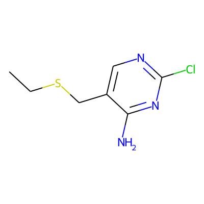 CCSCc1cnc(Cl)nc1N| HBA: | 3 | RingCount: | 1 |