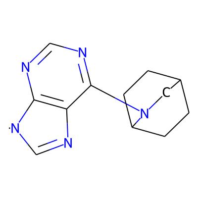 C1=Nc2c(ncnc2N2CC3CCC2CC3)[N]1| HBA: | 5 | RingCount: | 5 |