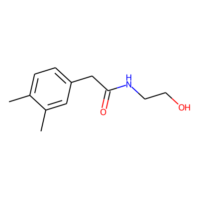 Cc1ccc(CC(=O)NCCO)cc1C| HBA: | 3 | RingCount: | 1 |