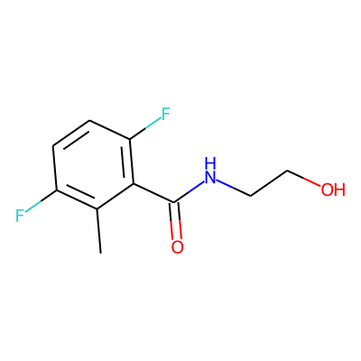 Cc1c(F)ccc(F)c1C(=O)NCCO| HBA: | 3 | RingCount: | 1 |