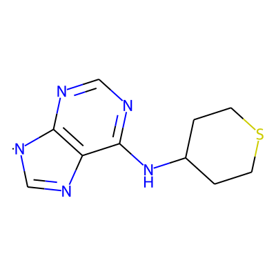 C1=Nc2c(ncnc2NC2CCSCC2)[N]1| HBA: | 5 | RingCount: | 3 |
