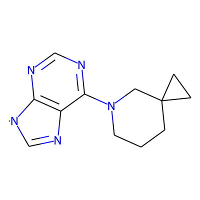 C1=Nc2c(ncnc2N2CCCC3(CC3)C2)[N]1| HBA: | 5 | RingCount: | 4 |