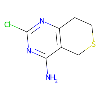 Nc1nc(Cl)nc2c1CSCC2| HBA: | 3 | RingCount: | 2 |