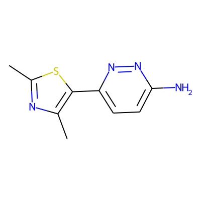 Cc1nc(C)c(-c2ccc(N)nn2)s1| HBA: | 4 | RingCount: | 2 |