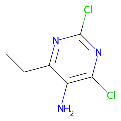 CCc1nc(Cl)nc(Cl)c1N| HBA: | 3 | RingCount: | 1 |