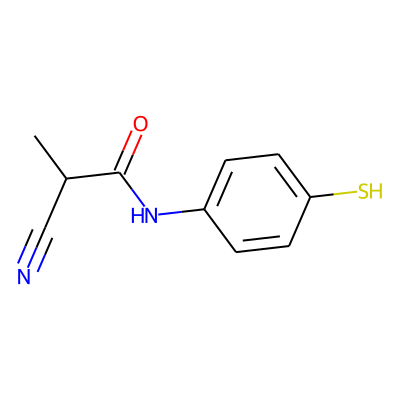 CC(C#N)C(=O)Nc1ccc(S)cc1| HBA: | 3 | RingCount: | 1 |